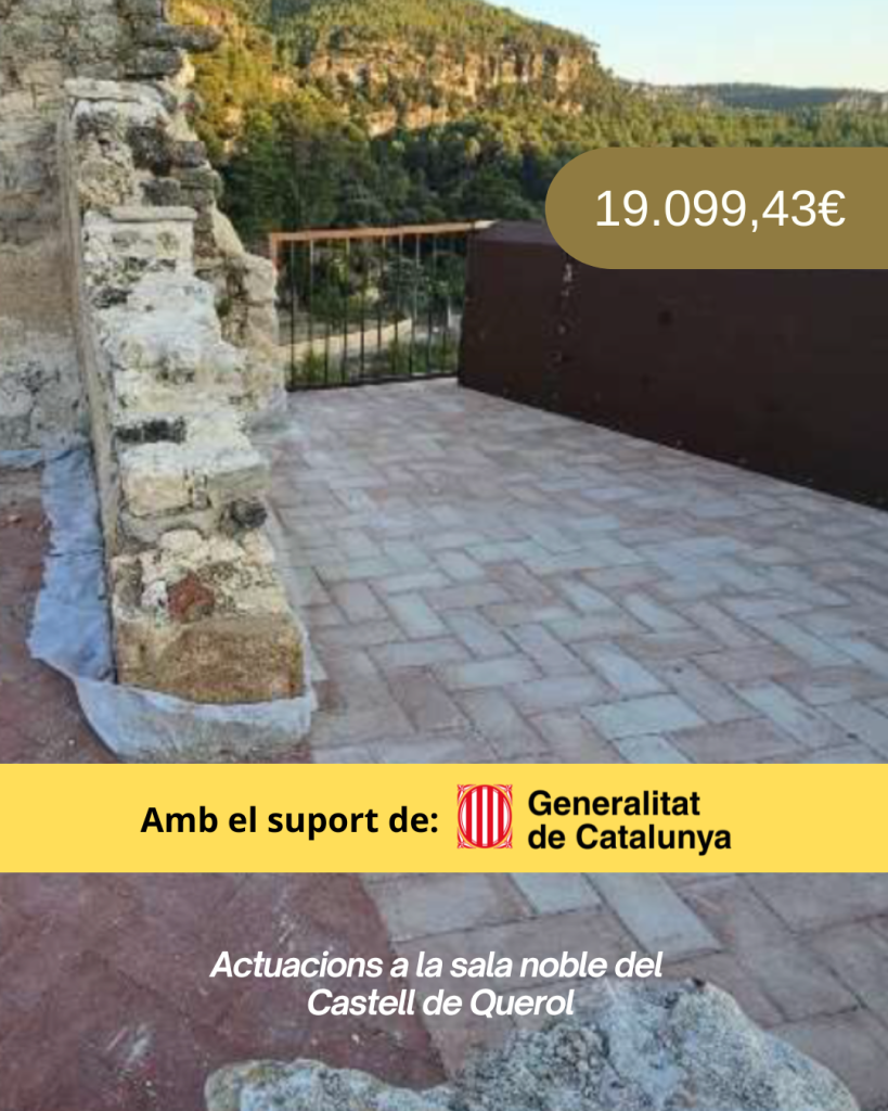 La Generalitat de Catalunya ha concedit a l’Ajuntament de Querol, per a l’exercici 2024, una subvenció de 19.099,43 euros (Exp. CLT002/24/000162). L’ajuda s’ha destinat a actuacions de millora a la sala noble del Castell de Querol, un dels espais més emblemàtics del municipi.